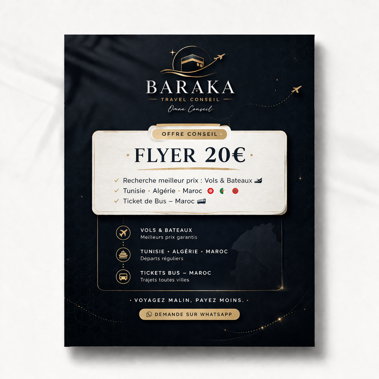 Baraka Travel Conseil est votre partenaire de confiance pour des voyages sans souci. Nous nous engageons à offrir des solutions fiables et personnalisées, en mettant l'humain au cœur de chaque étape de votre aventure.